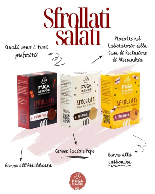 La Cacio e Pepe diventa una gemma salata, un’innovativa interpretazione di un classico della cucina italiana. Queste gemme sorprendenti combinano formaggio pecorino e pepe nero, due ingredienti iconici della tradizione culinaria italiana. Il pecorino cremoso si unisce al pepe nero, offrendo un’esplosione di gusto unica. Ogni morso è un viaggio attraverso i sapori intensi della tradizione italiana. Perfette per ogni momento della giornata, le gemme Cacio e Pepe sono ideali per una pausa golosa o un aperitivo sfizioso. Ogni confezione invita a gustare la nostra tradizione in modo nuovo e sorprendente, sostenendo i progetti di reinserimento lavorativo dei detenuti.