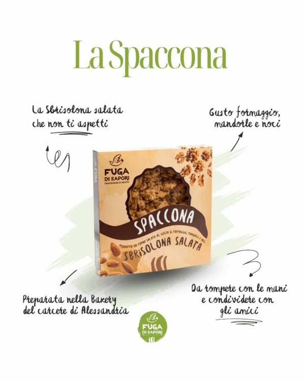 Prodotto nel nostro laboratorio nella Casa Circondariale di Alessandria, una ricetta della tradizione diventa uno snack salato, per stupirti! La friabilità e la consistenza della sbrisolona diventa uno snack salato per stupirti ad ogni morso! Le noci e il formaggio si accompagnano in una ricetta unica. Da rompere con le mani e condividere con gli amici, senza perderne nemmeno una briciola!