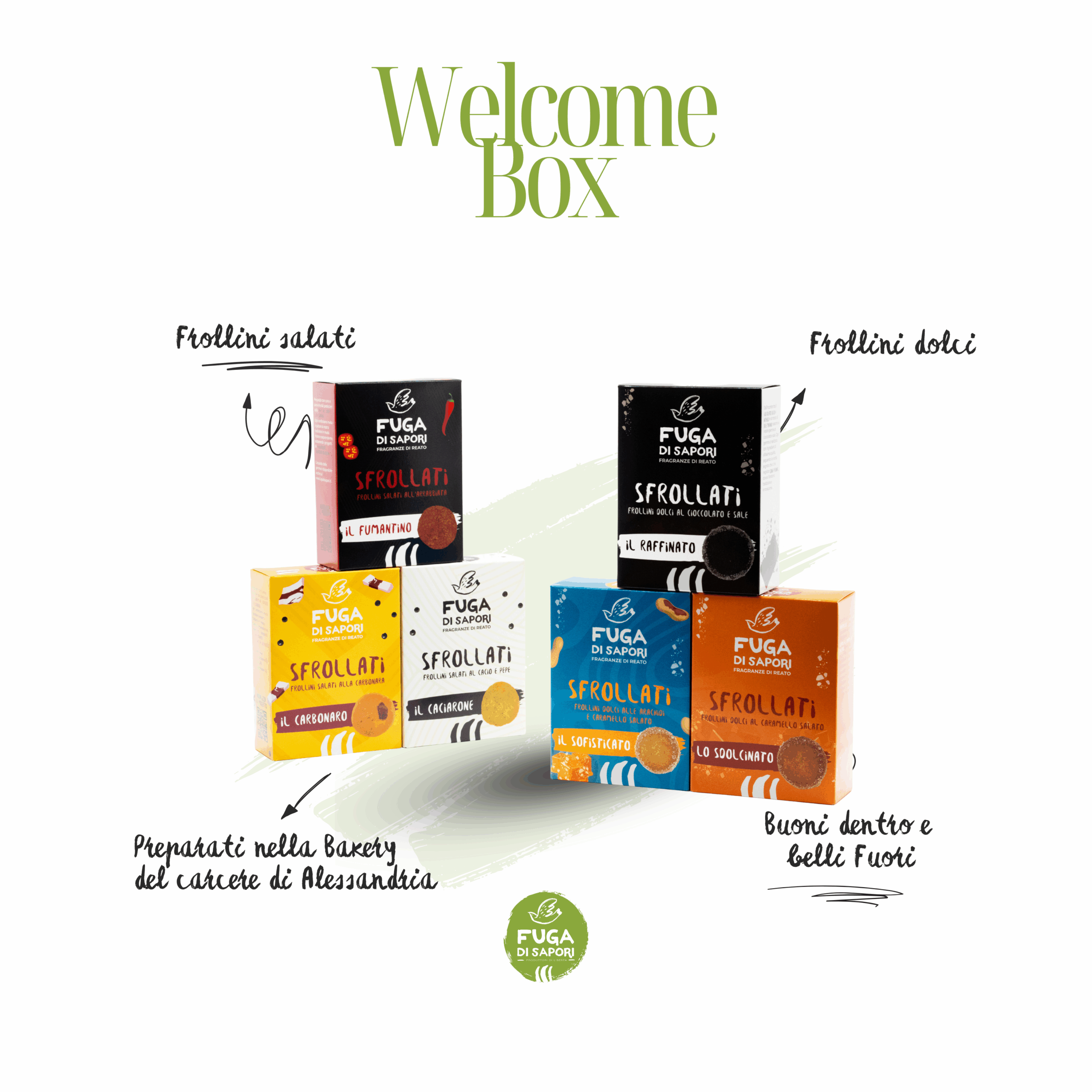 €30,00Original price was: €30,00.€22,00Current price is: €22,00. - Welcome Box Fuga di Sapori. Un'idea regalo davvero speciale! PRODOTTI: 1 confezione di Gemme cioccolato e fiocchi di sale 1 confezione di Gemme arachidi e caramello salato 1 confezione di Gemme al caramello salato 1 confezione di Gemme cacio e pepe 1 confezione di Gemme all'arrabbiata 1 confezione di Gemme alla carbonara Per richieste scrivere a info@fugadisapori